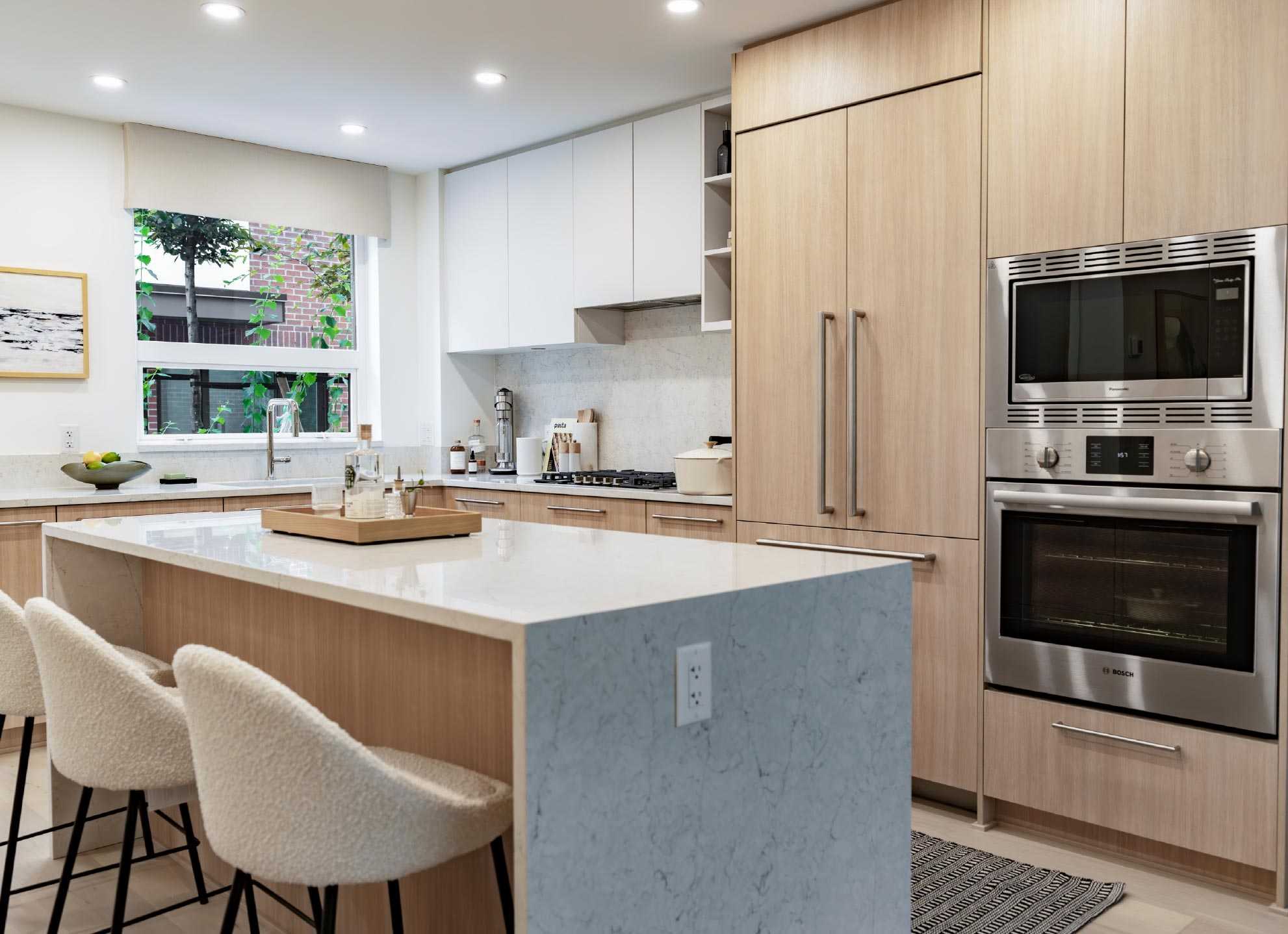 Two curated colour schemes make a beautiful backdrop to everyday living. Meanwhile, modern finishes like quiet soft-close cabinets and sleek roller blinds keep your home feeling like your own personal sanctuary.