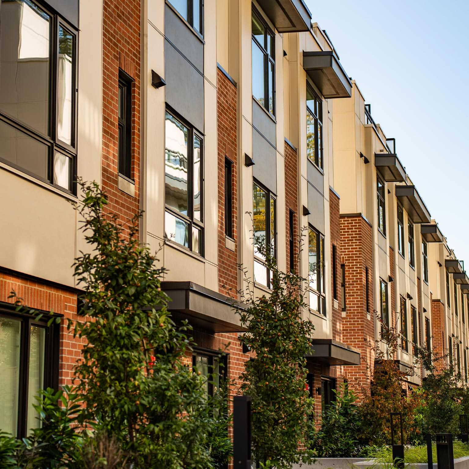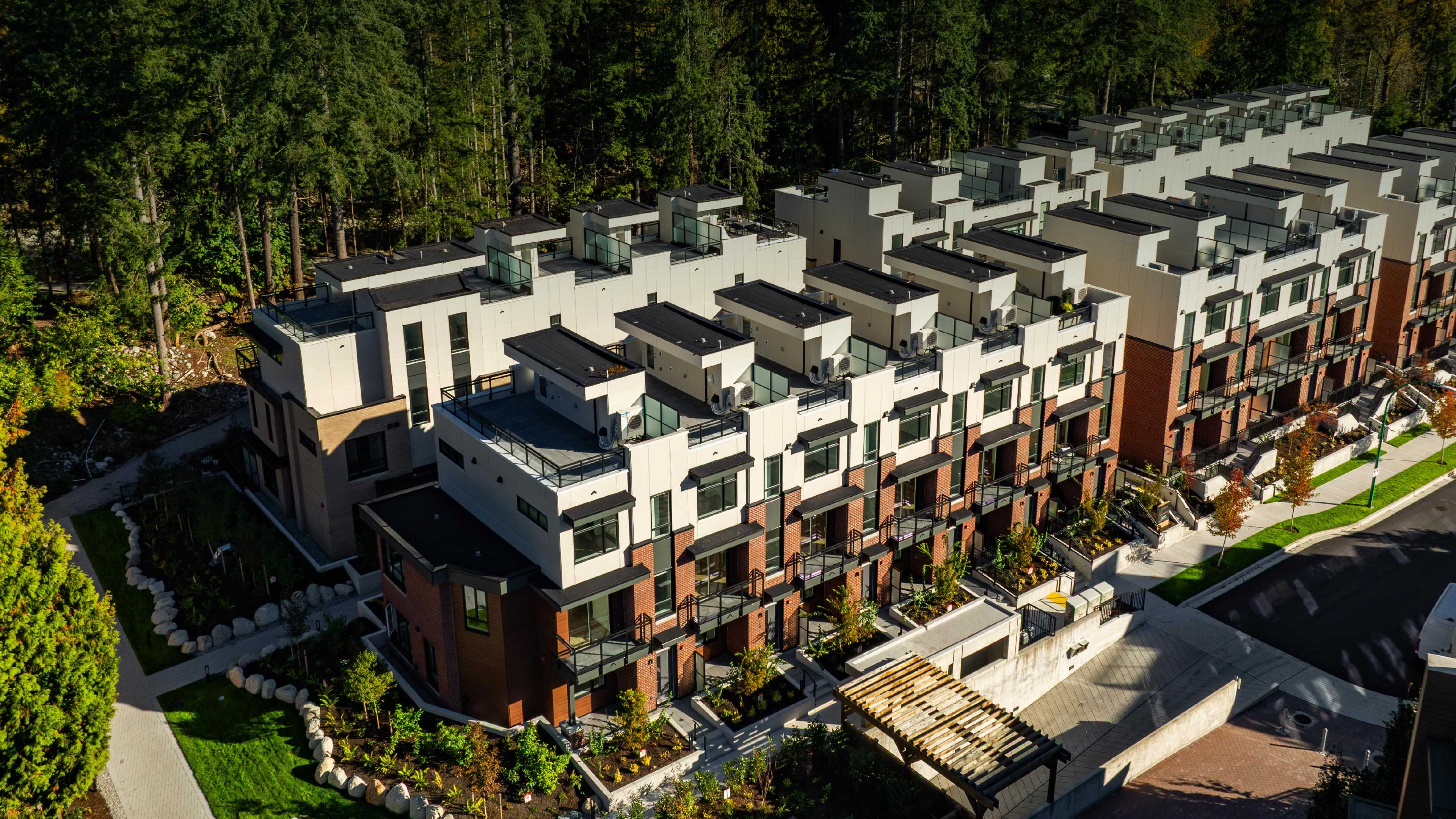 Rooftop patios and landscaped yards stretch towards the sky and surrounding environment while fresh air flows through the trees to your front door.