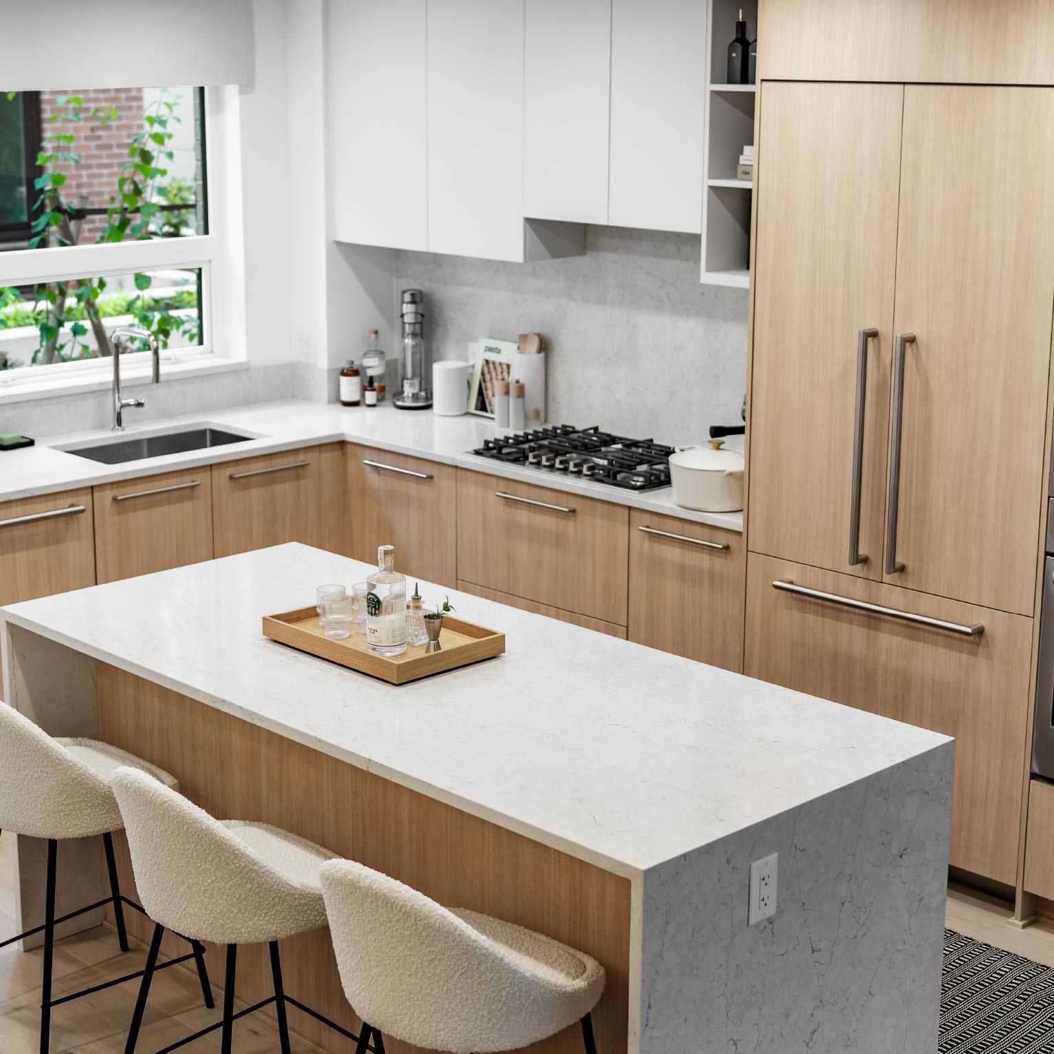 Two curated colour schemes make a beautiful backdrop to everyday living. Meanwhile, modern finishes like quiet soft-close cabinets and sleek roller blinds keep your home feeling like your own personal sanctuary.